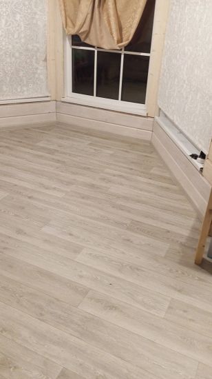 Постелим на выровненное основание пола подложку. Вырежем линолеум или ковролин по размерам комнаты, зафиксируем его на полу. Работу выполним за 6–8 часов в зависимости от площади пола. Будет шумно и пыльно. Цена за укладку от 15 кв. метров.