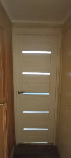 Установим дверную коробку, ручку, наличники. Навесим дверное полотно. Проверим, чтобы ничего не скрипело и замки открывались. Уберём за собой. Работу выполним за 2–3 часа.